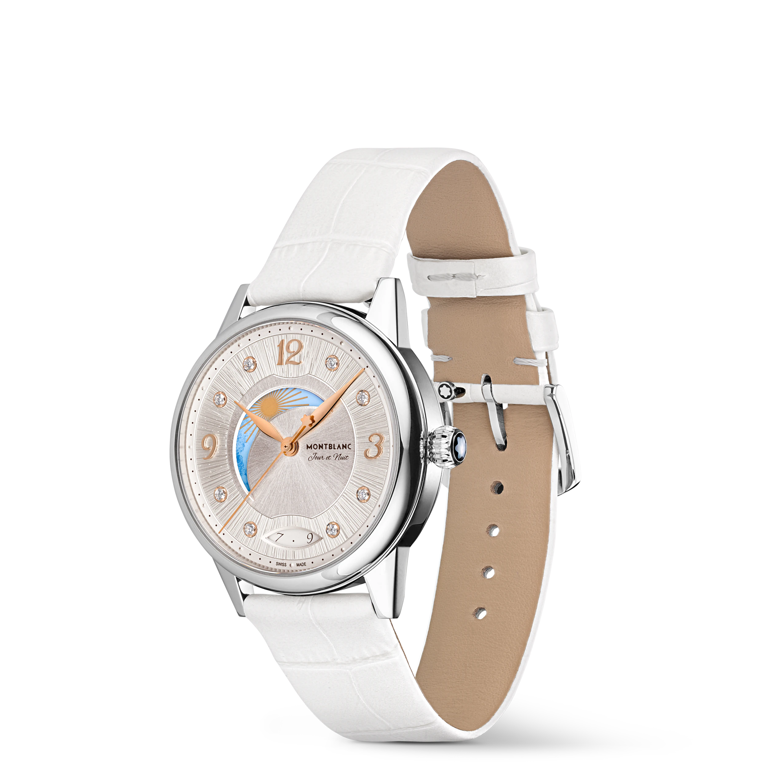 MONTRE BOHEME DAY AND NIGHT 34 MM MVT AUTOMATIQUE ACIER INOXYDABLE BRACELET CUIR DE VEAU BLANC